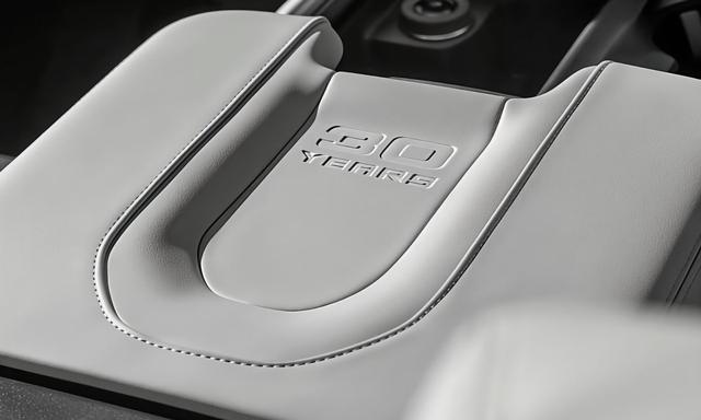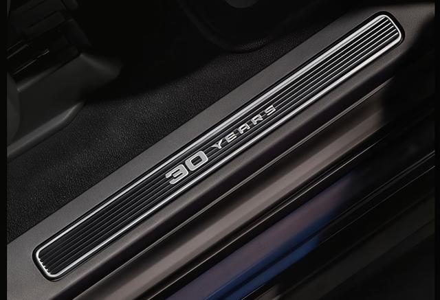 走进车内,盐晶灰(Salt Crystal Gray) 真皮座椅让人眼前一亮,这种中性色调既耐脏又显高级,与常见的黑色内饰形成鲜明对比。门槛饰板和中央扶手区域的30周年纪念徽标,在乘客上下车和日常使用时都能直观感受到专属感,比那些只在座椅头枕绣字的纪念版更显用心。